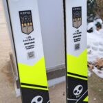 Very good condition, sharp edges, rarely free skied, less than 20 days racing…mostly at Buck Hill. Waxed before each race, so very fast running. The metal cap on the top took a hit after a fall and is slightly bent, but it doesn’t impact performance at all.